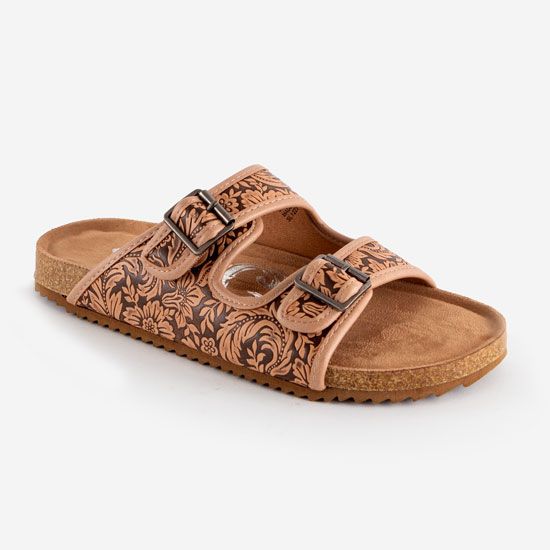 Regular price $49.99Step into style and comfort with the Tanya Tooled Sandal by Very G. Made from light tan tooled leather, these sandals feature adjustable straps and a cushioned foot bed for the perfect fit and super comfy feel. The Western-inspired design and embroidered floral print add a touch of whimsy, making them a must-have for any occasion. No wonder they're Tik Tok famous!