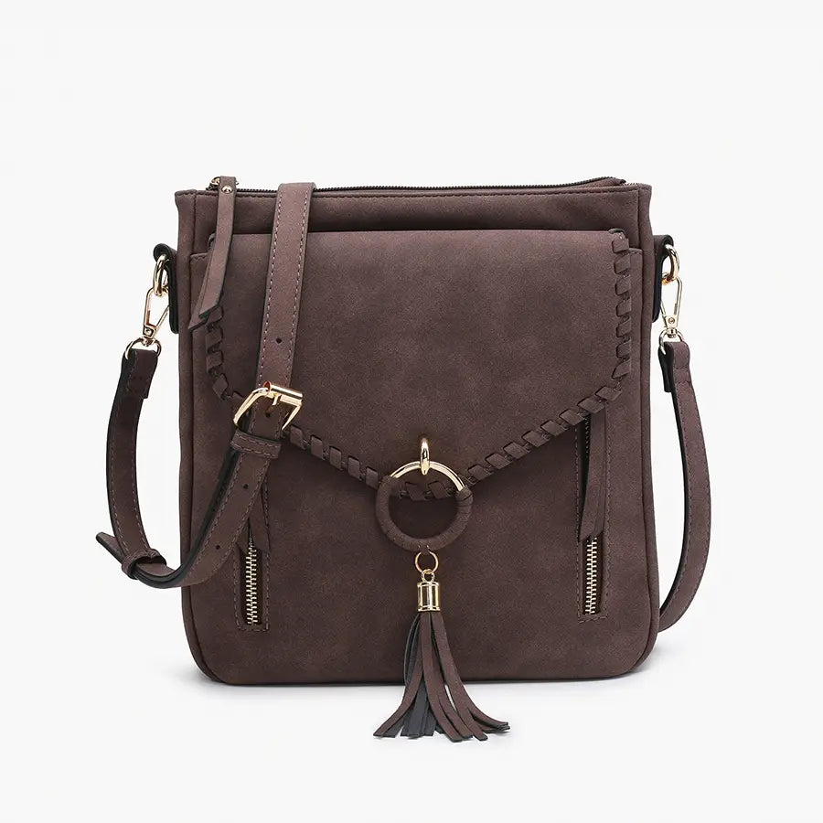 Layla Faux Suede Whipstitch Crossbody with Tassel