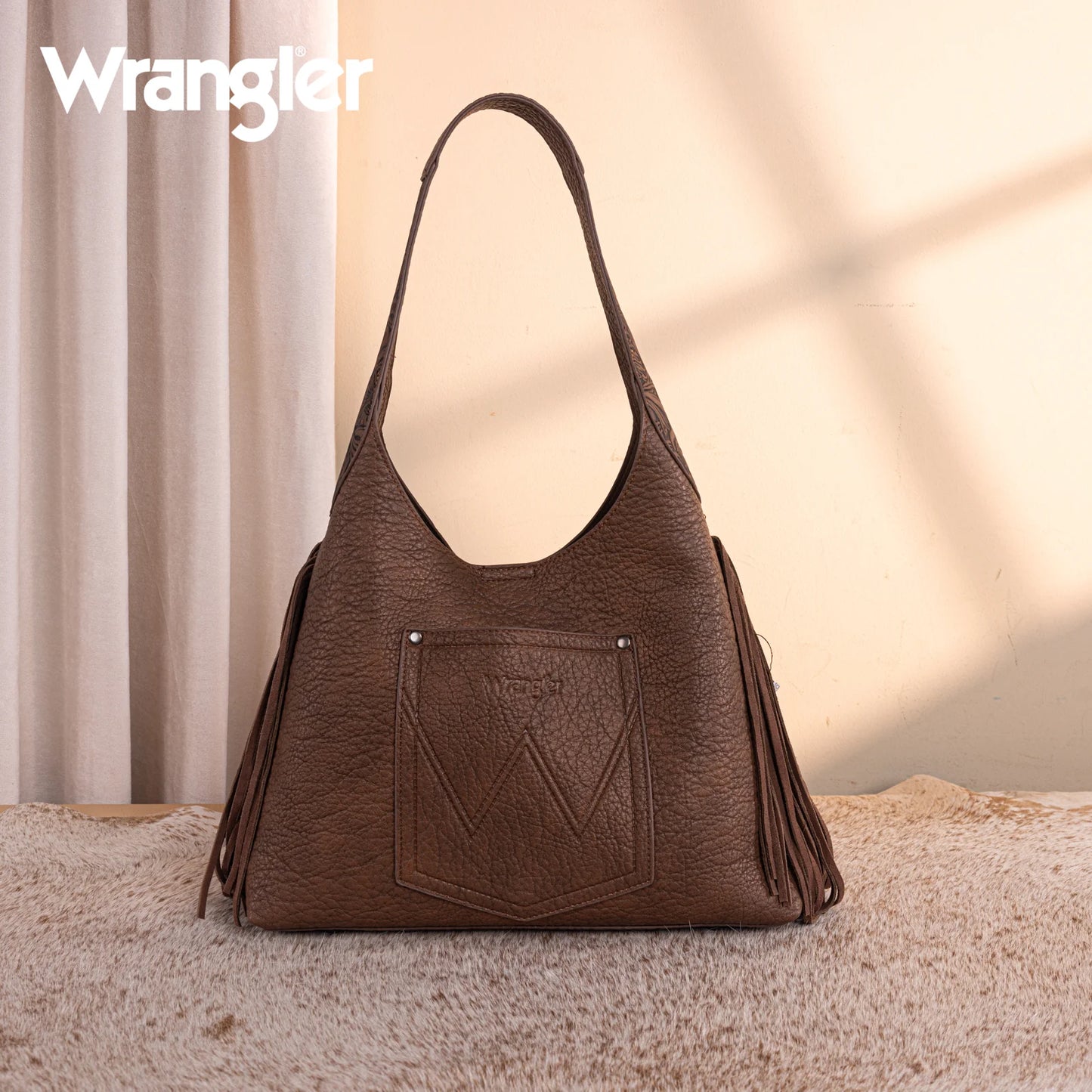 Wrangler Fringe Floral Tooled Hobo Bag-Coffee or Brown