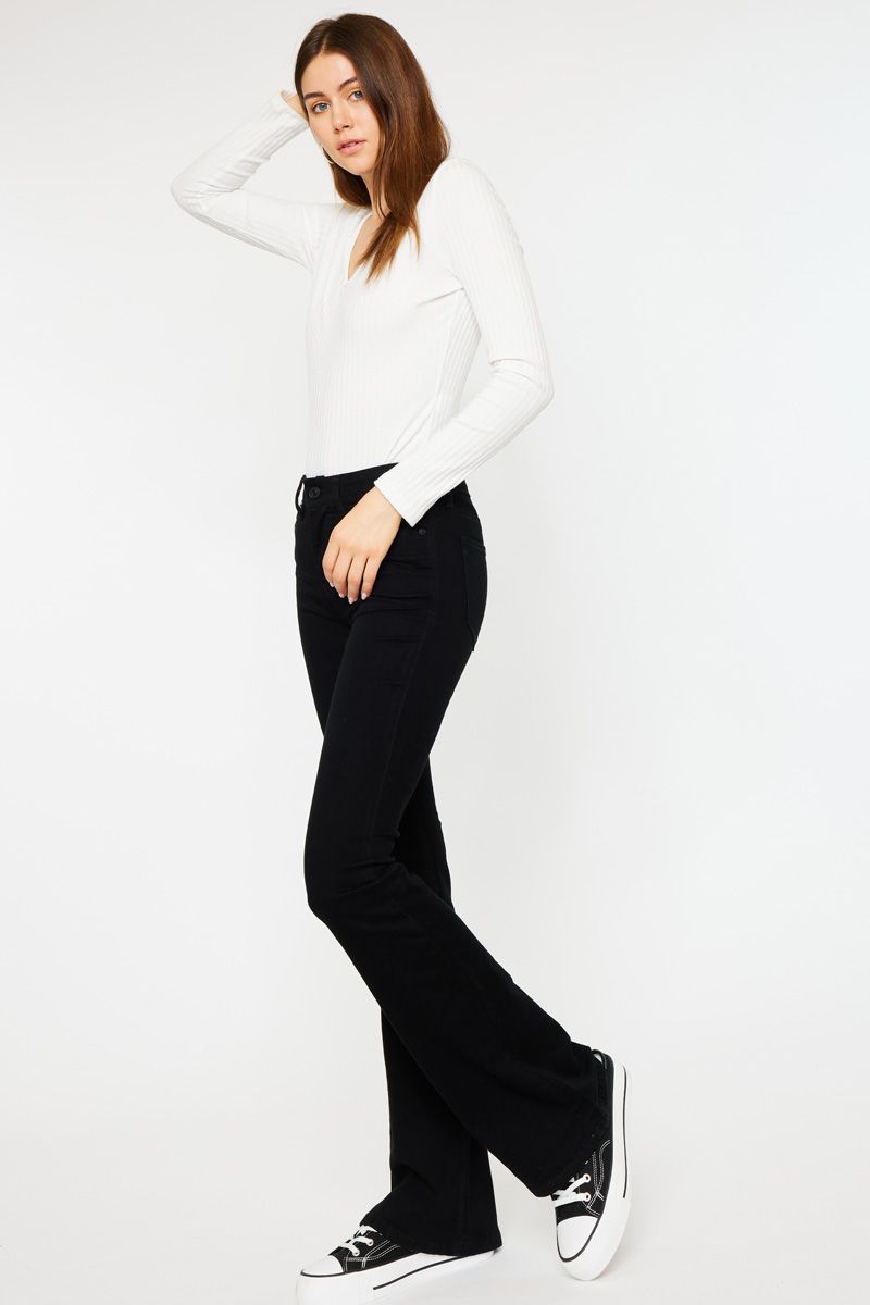 Step into style with the Bianca Mid Rise Black Wide Flare Jeans by KanCan. These sleek black jeans offer a comfy stretch fit with a clean, non-distressed look that pairs perfectly with anything. Featuring a zip fly, a flattering 9" rise, and a 33.75" inseam (in size 3/25), they combine comfort and chic effortlessly. Made from a cozy blend of cotton, rayon, and spandex, they move with you while flaring wide at the hem for that fun, retro vibe. Ready to twirl your way through the day? These jeans have got you covered!
