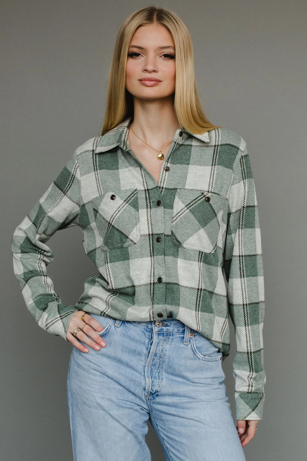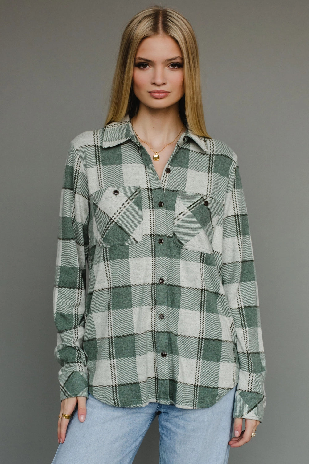 Wrap yourself in cozy charm with the Gemi Green & Light Grey Button Up. This super soft plaid shirt blends green and light gray hues for a fresh, playful look. Crafted from a comfy mix of polyester, rayon, and a touch of spandex, it offers just the right amount of stretch for all-day ease. Perfect for layering or wearing solo, it’s your new go-to for effortless style and comfort.