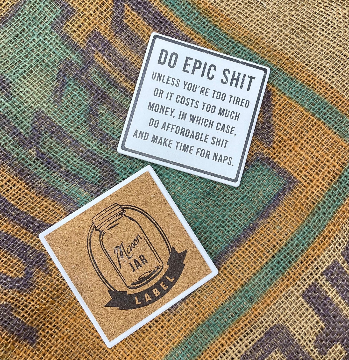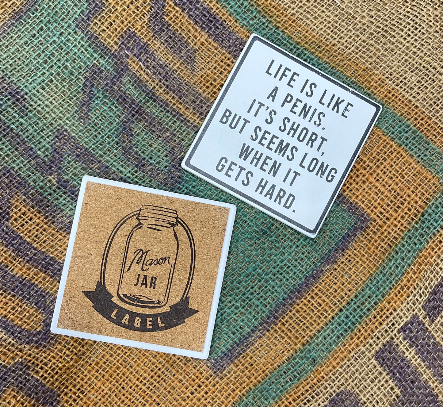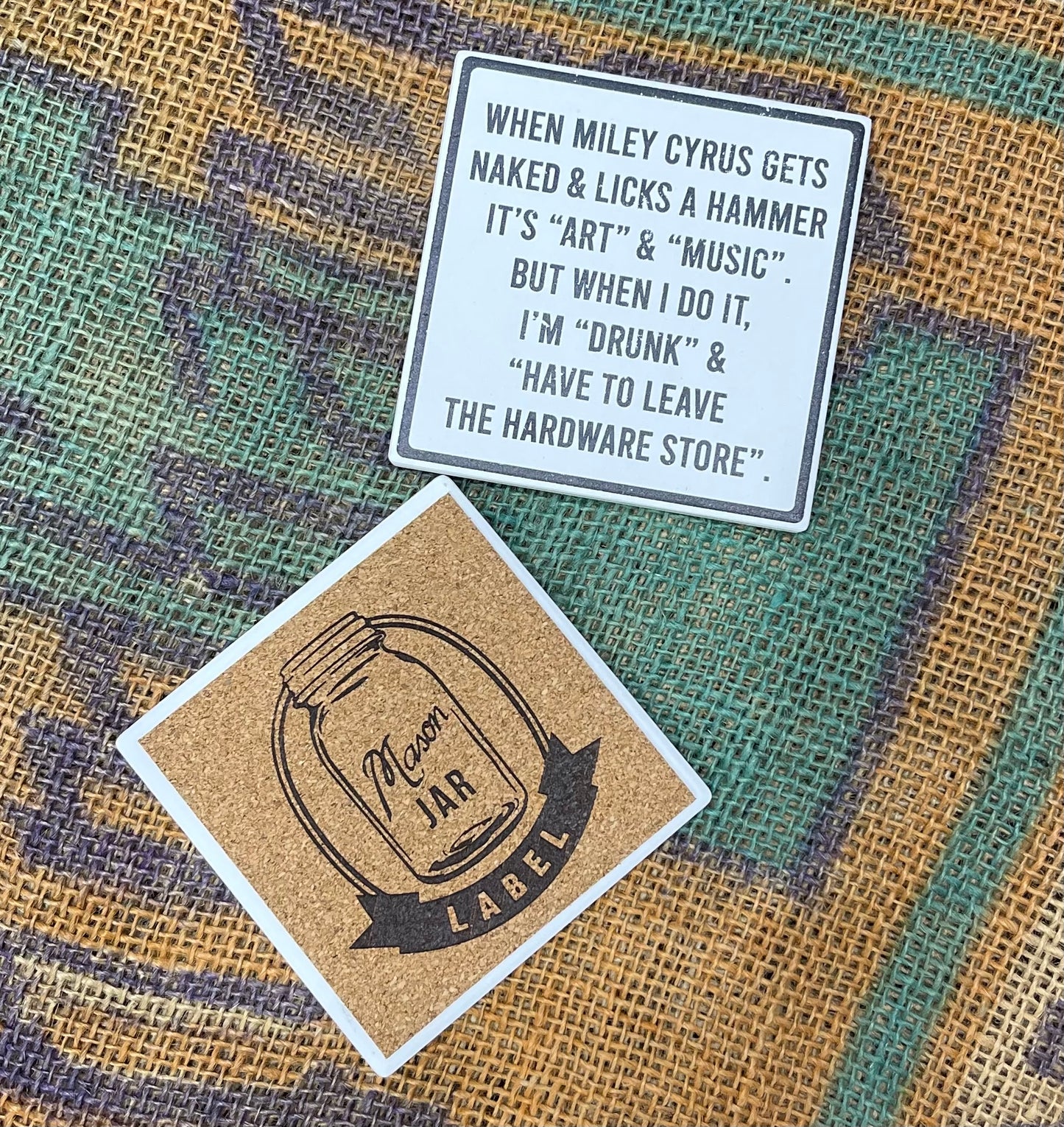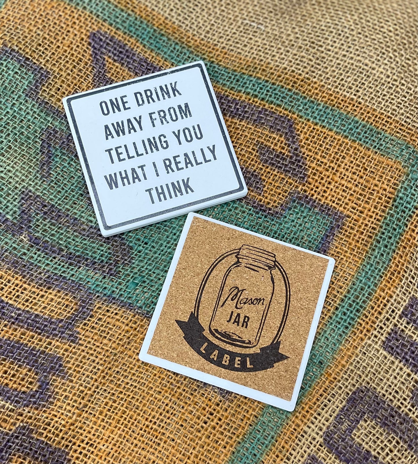 *Approx 4"x4" *UV Printed w/scratch resistant coating *Vintage Distressed Design *Absorbent Ceramic Coaster w/ slip proof Cork Bottom *Heat resistant (23 degrees-248 degrees F)
