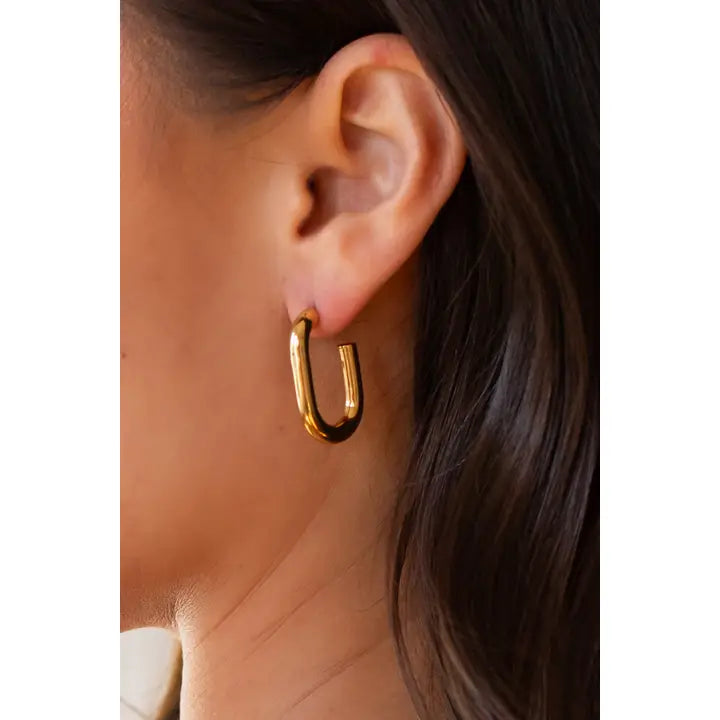 Add a touch of luxury to your look with these 18K gold hollow oval hoop earrings. Measuring 1" in length, they are lightweight and comfortable to wear all day. Plus, they are waterproof and made from stainless steel, so they are safe for sensitive ears. Upgrade your style with these elegant and versatile earrings.