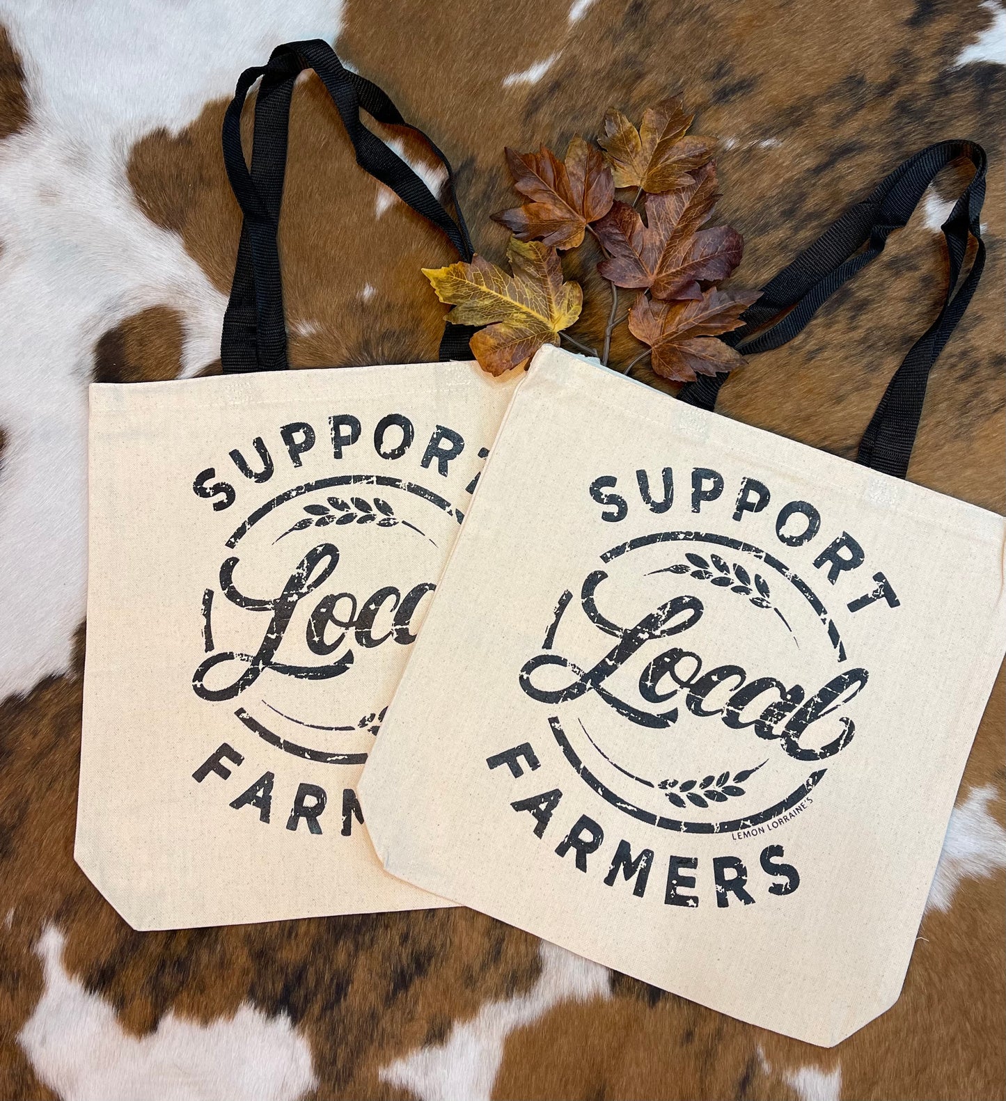 100% Heavy Cotton Canvas Black Handles Screen printed (black ink) 15" W x 15" H x 3" D