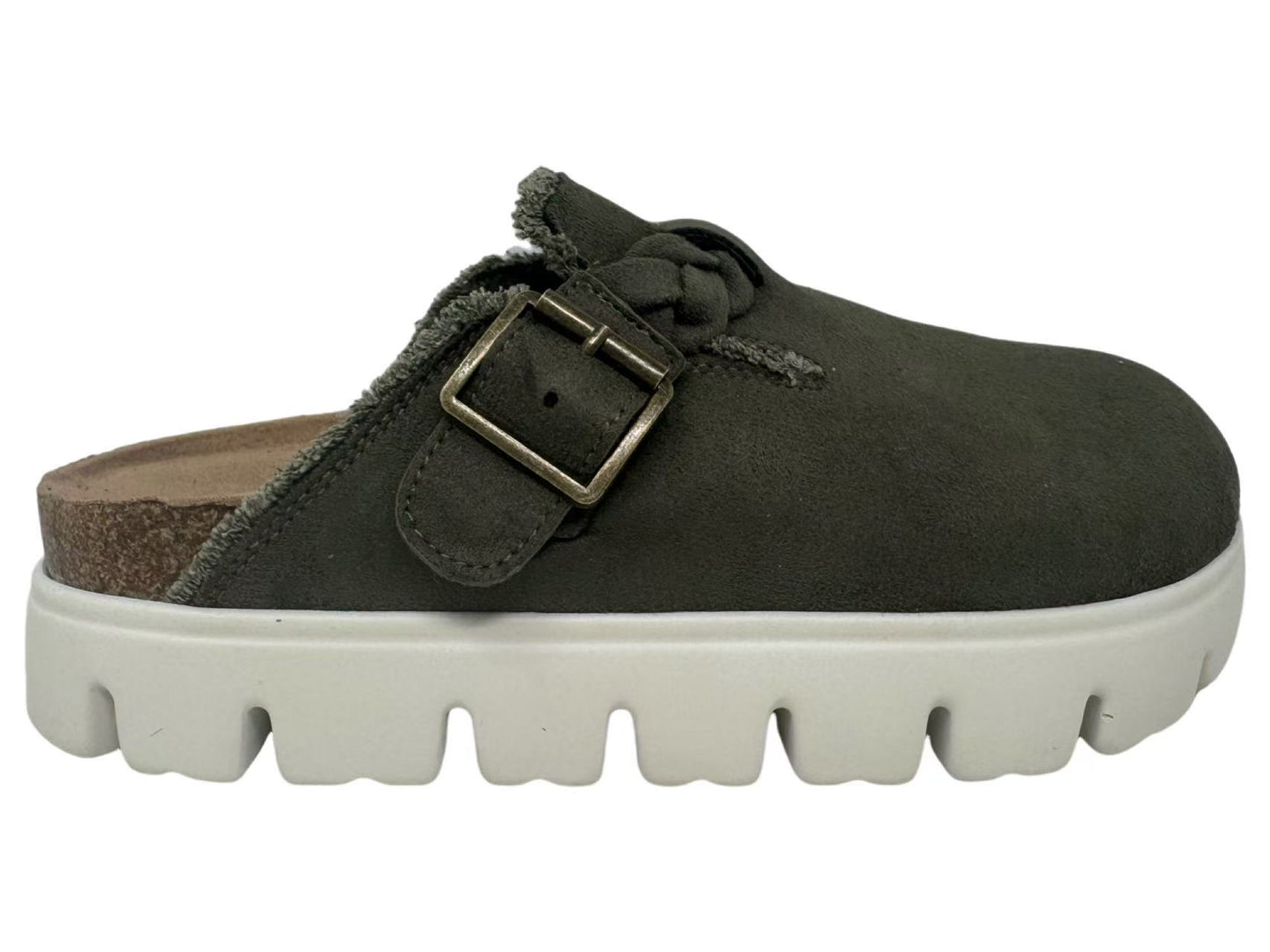 Elevate your style with The Cali Mule, available in elegant Olive or Taupe. This slip-on features a distinctive platform accented by braided and buckle details, combining edgy design with refined sophistication. The molded footbed ensures lasting comfort, making it a perfect choice for those who value both fashion and ease.