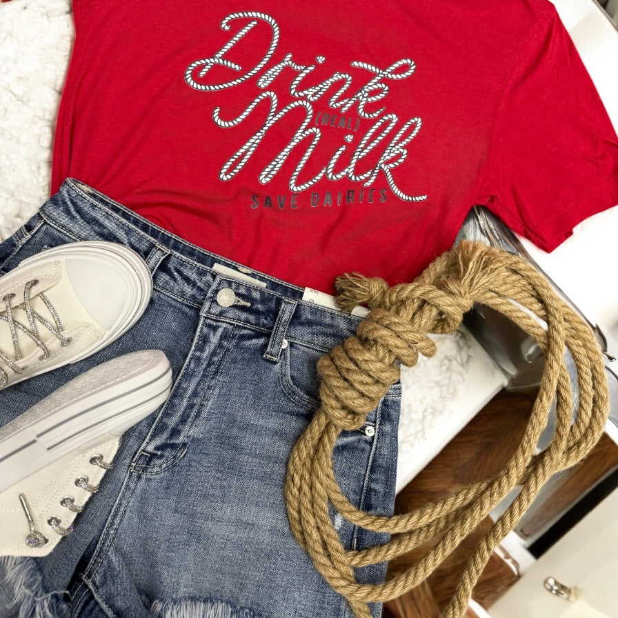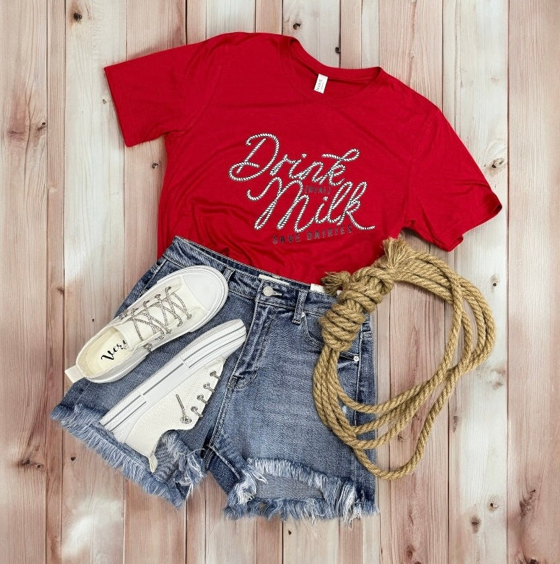 Quirky and playful, this lightweight triblend red graphic tee is perfect for anyone who loves milk and wants to support our struggling dairies. With the bold message "Drink Milk / Save Dairies" printed on the front, you'll make a statement while staying comfortable in this true-to-size fit.