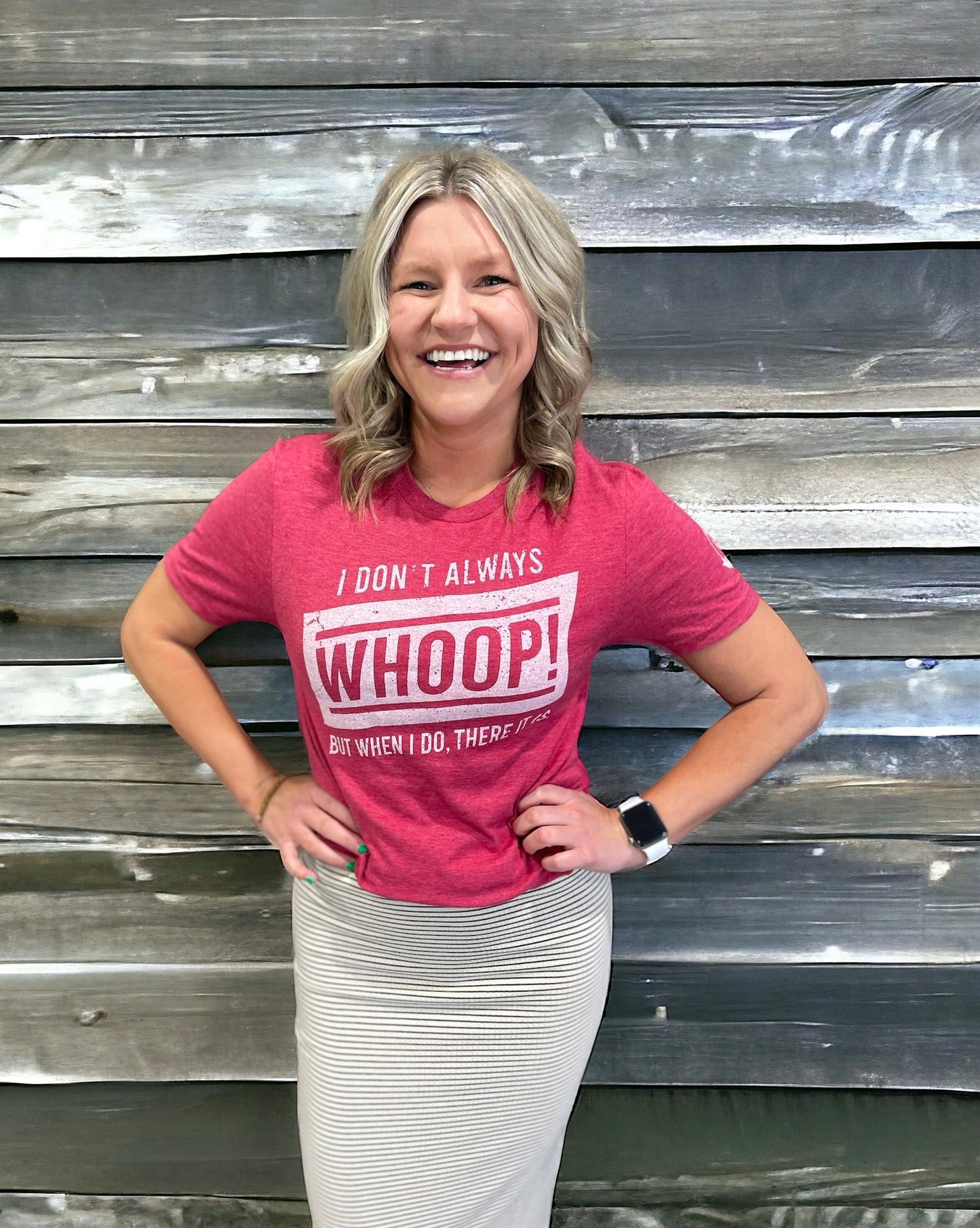 Vintage red 50/50 cotton/poly graphic tee. White screen print. "I don't always whoop, but when I do, there it is"