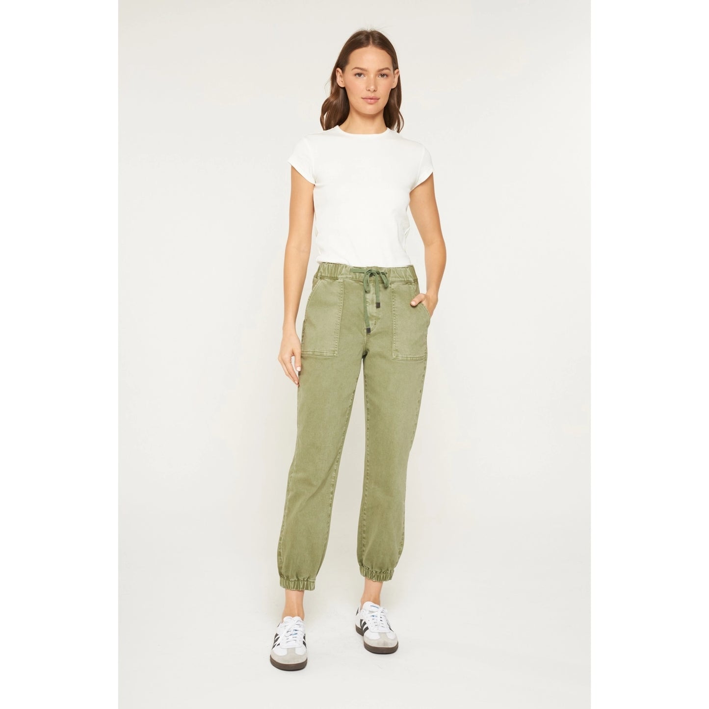 Elevate your casual wardrobe with the Mica HR Denim Jogger in Olive. This high-rise crop features a comfortable 11" front rise and 27" inseam, perfect for showing off your favorite sneakers. The 10 3/4" leg opening provides a relaxed yet tapered silhouette that works for everything from errands to weekend hangouts.