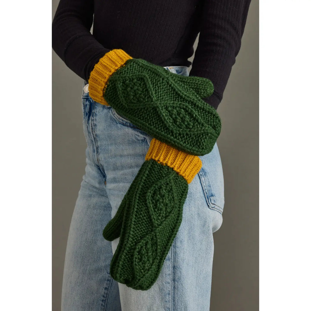 Add Green & Gold Trim Cable Knit Mittens to the cart