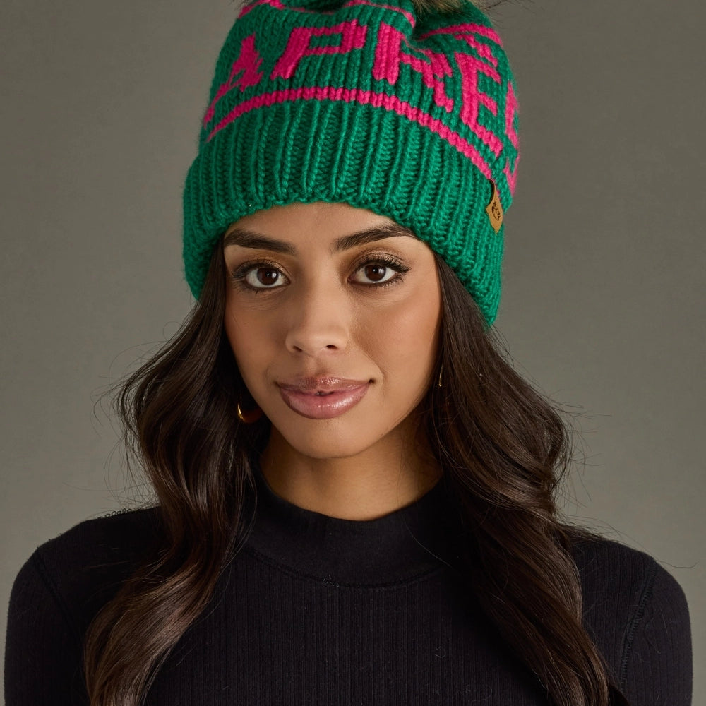 Add Green & Gold Trim Cable Knit Pom Hat to the cart