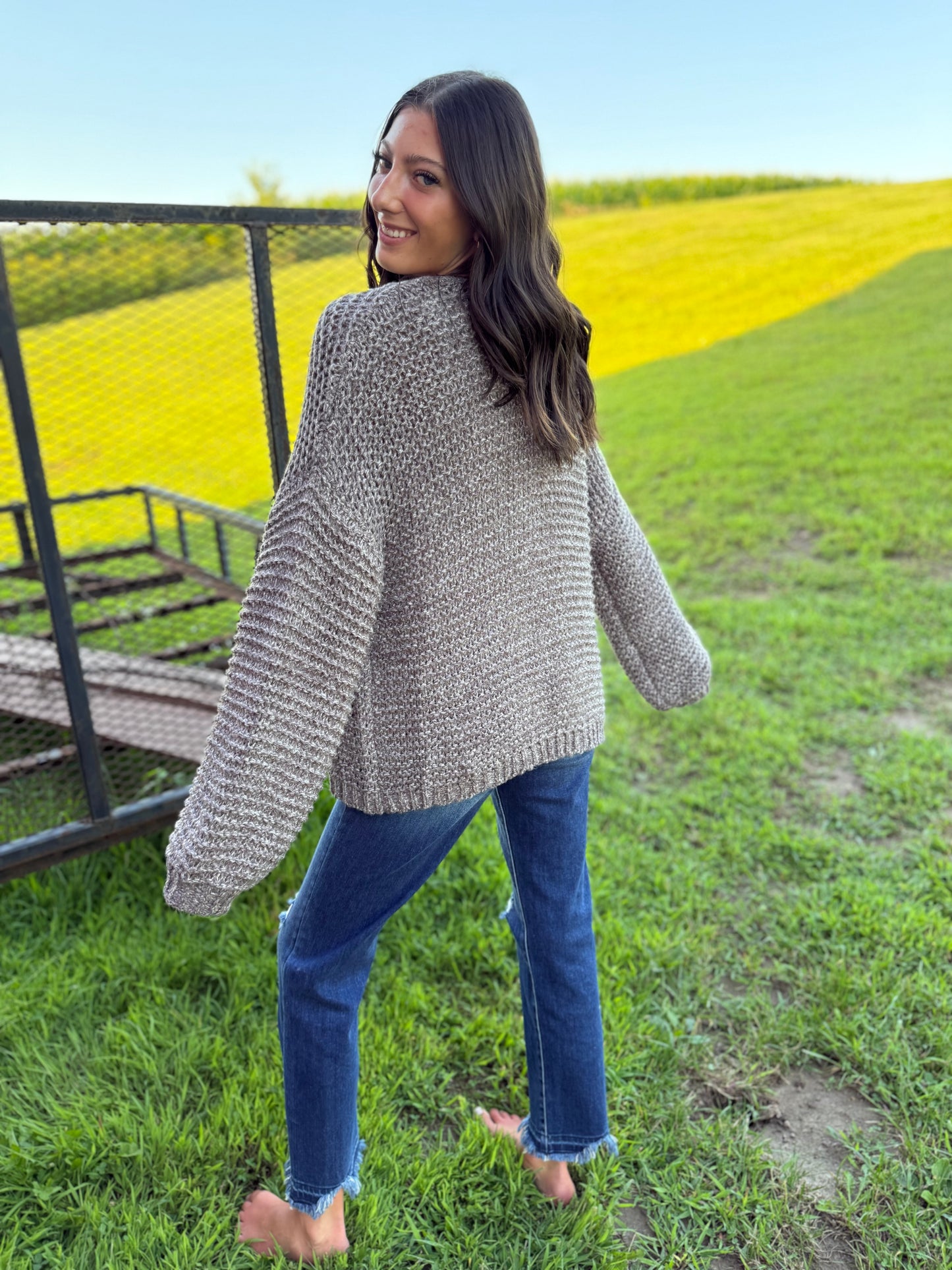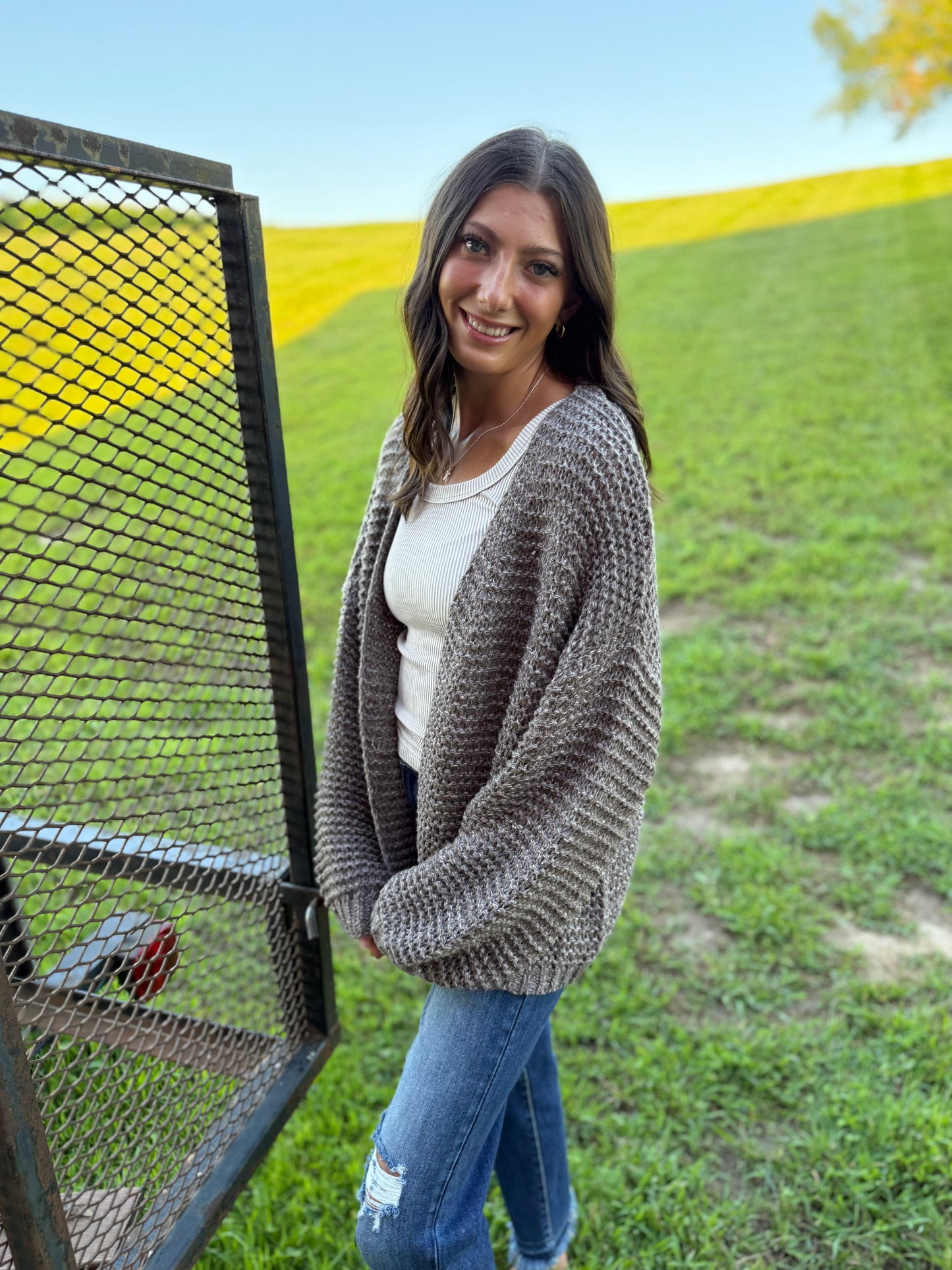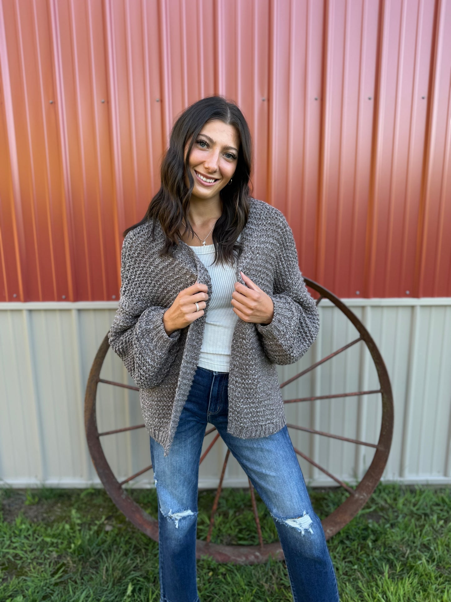 The Calvin Cardigan in Cocoa combines effortless elegance with cozy comfort. Its wide knit fabric in a rich cocoa mix offers warmth and texture, while the open-front design and wide bell sleeves create a graceful silhouette. Falling just below the waist and fitting true to size, this cardigan is perfect for layering refined, versatile looks.