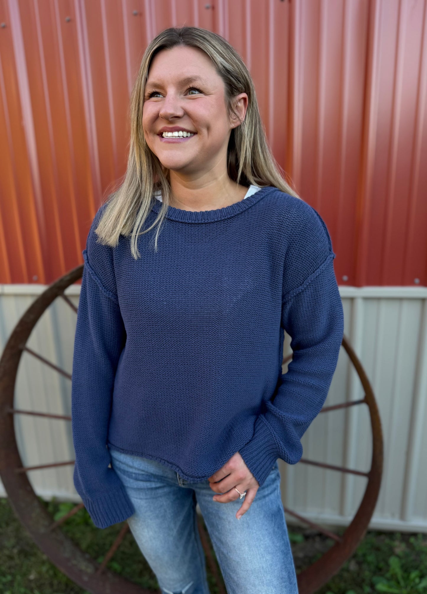 Nania Pullover Navy Crewneck Sweater