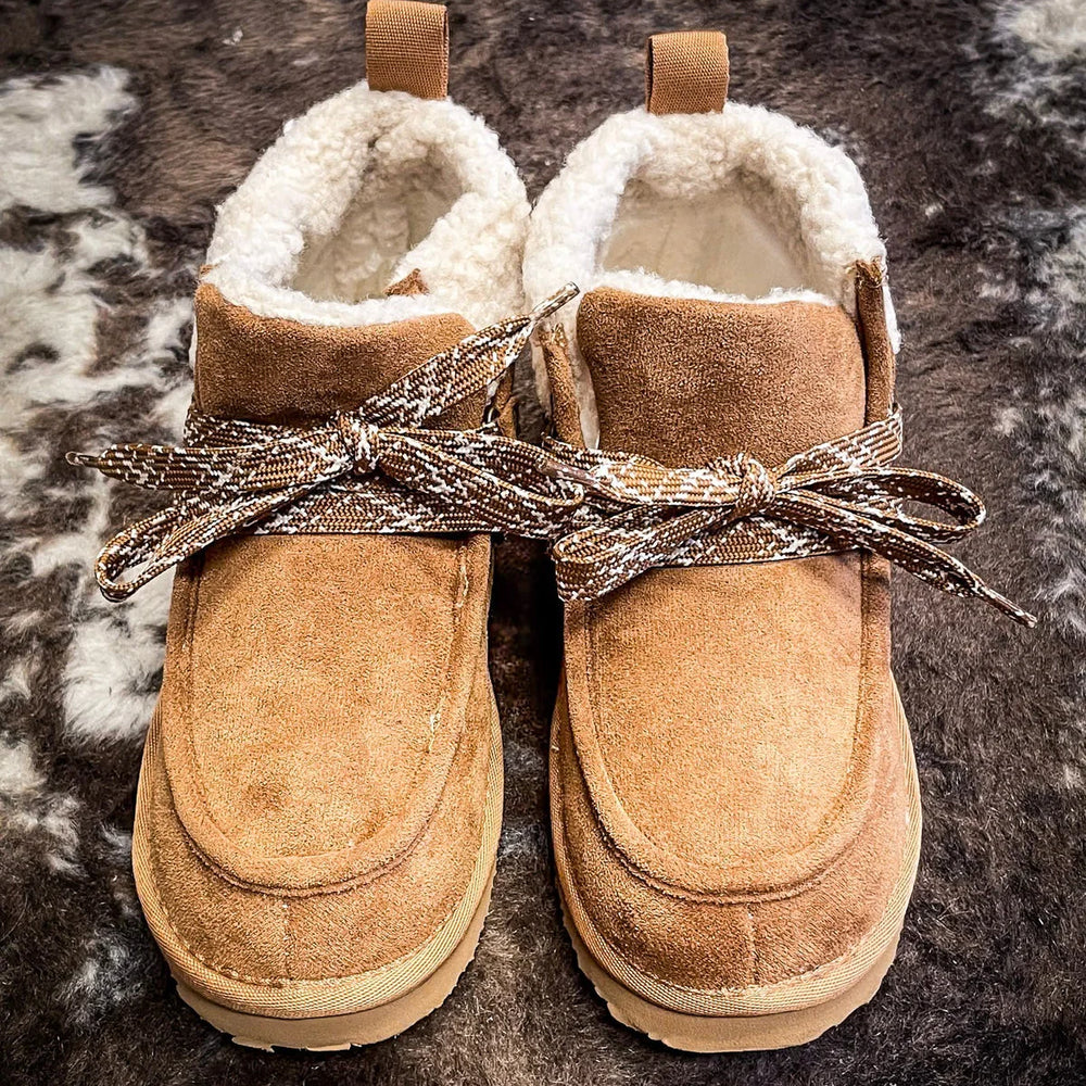 Step into cozy comfort with the Very G Cherilyn Slip On in Tan! This high-top slip-on rocks a playful blend of style and warmth—think sherpa lining that feels like a hug for your feet, plus laces for that perfect casual vibe. The cushioned insole keeps things soft all day long, while the lightweight sole lets you move freely. Whether you're running errands or hanging out, this versatile shoe pairs effortlessly with your everyday looks and keeps your feet happy and supported.