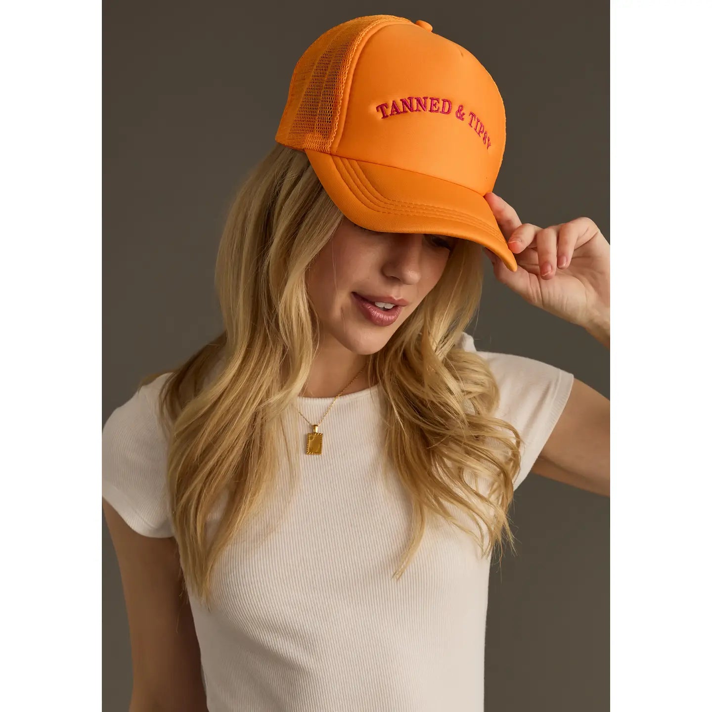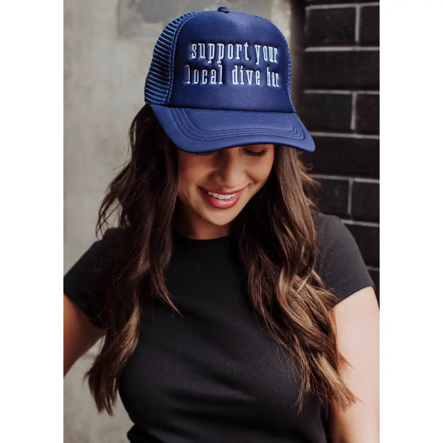Get ready to turn heads with our Fun Trucker Hats! With an adjustable back closure and breathable mesh, you'll stay comfortable while showing off your unique style. Available in navy with "Support your Local Dive Bar", orange with "Tanned & Tipsy", and pink with "I'll Drink to That" - choose your favorite and let the fun begin!