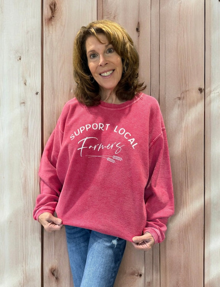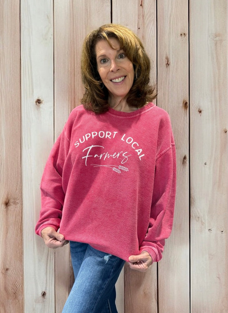 Support Local Farmers Thermal Vintage Pullover in Cranberry